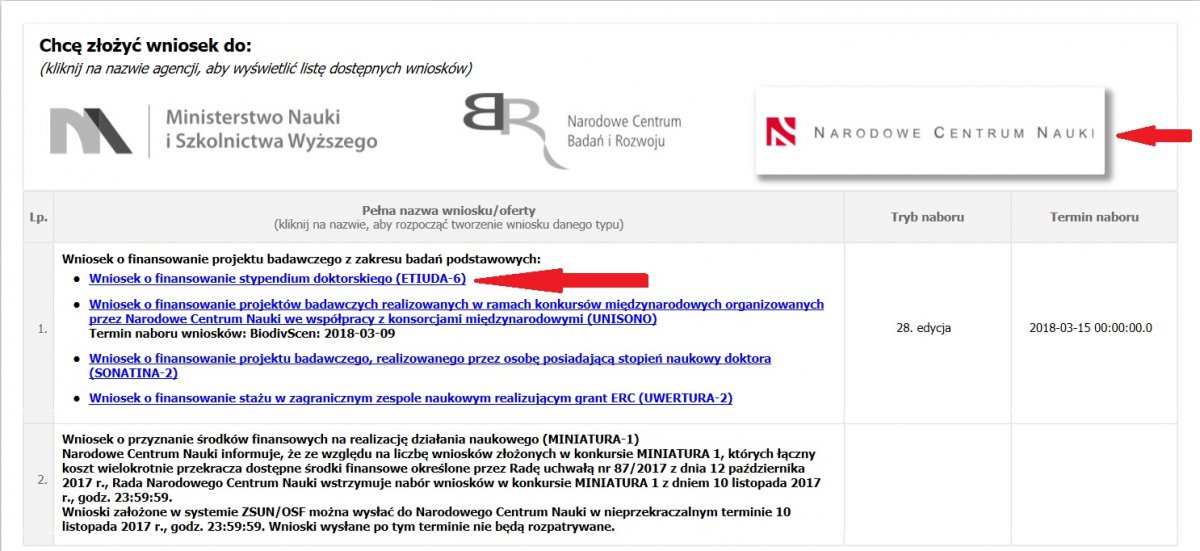 UWAGA: Nie należy wysyłać żadnej wersji papierowej do Narodowego Centrum Nauki. Wnioski należy wysłać wyłącznie drogą elektroniczną.